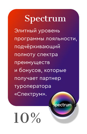 - В программу не входят Only ticket, MICE, рекламные туры и выездные мероприятия туроператора «Спектрум»